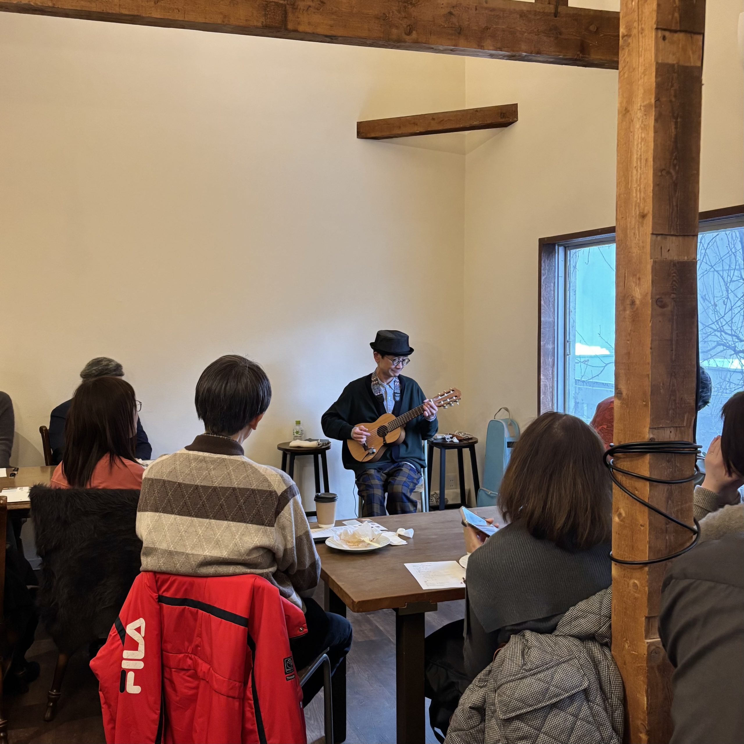 ・通常のライヴとは異なり、ギタレレの生演奏をBGMに本と過ごす時間です。